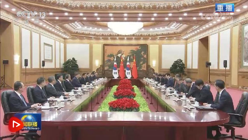 习近平指出,当前世界百年变局加速演进,国际形势更加变乱交织。中韩在维护地区和平、促进全球发展方面肩负重要责任,有广泛利益交集,应当坚定站在历史正确一边,作出正确战略选择。80多年前,中韩两国付出巨大民族牺牲,赢得抗击日本军国主义的胜利。今天更应携手捍卫二战胜利成果,守护东北亚和平稳定。作为经济全球化的受益者,中韩要共同反对保护主义,践行真正的多边主义,为推进平等有序的世界多极化、普惠包容的经济全球化作出贡献。