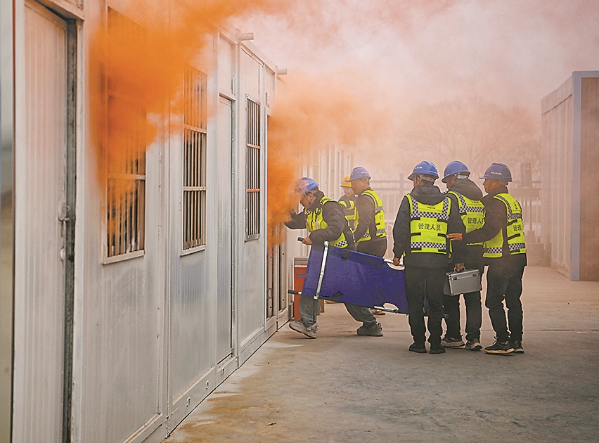 近日,中铁上海工程局襄新高速公路项目部举行“全民消防 生命至上——安全用火用电”消防应急演练活动。演练模拟施工现场突发火情,设置人员疏散、初期火灾扑救及伤员救助等环节。活动采取“讲解+示范+实战”相结合的方式,进一步提升一线建设者的消防安全意识和自救互救能力,为项目安全生产筑牢防线。