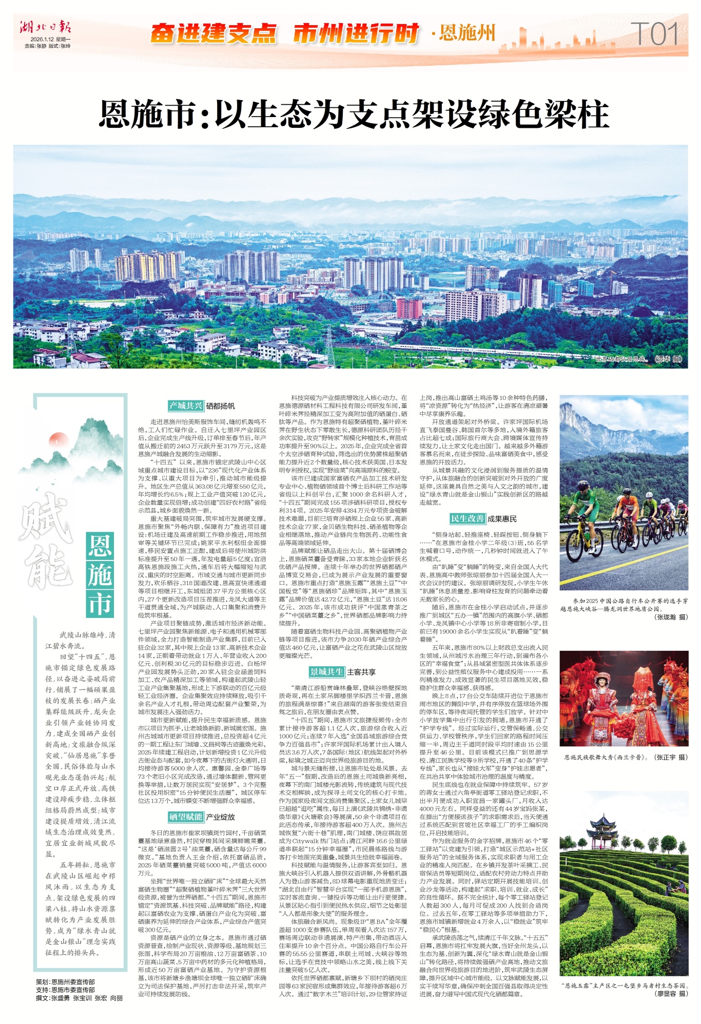 锚定打造国家重点生态功能区、国家农业绿色发展先行区、全国硒产业高地、世界级旅游目的地和武陵山重要枢纽,“十五五”时期,恩施加快建设“绿水青山就是金山银山”实践创新区的新征程更加壮阔。
