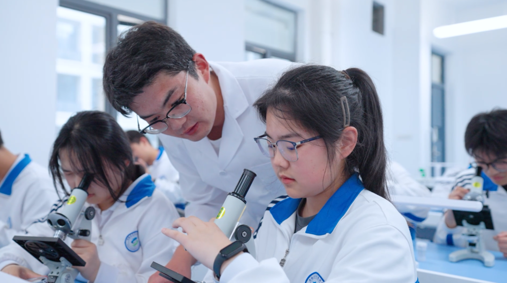 黄梅实验高中的学生在上生物实验课