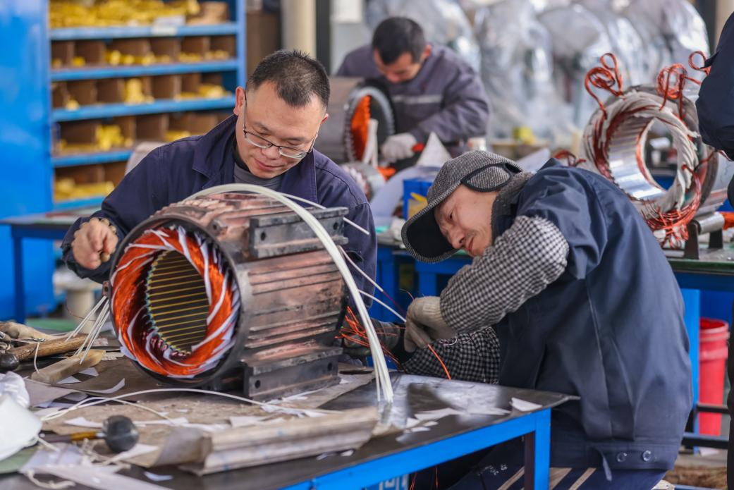 襄阳世阳电机有限公司车间内工人们赶制订单(张沛、张晶|摄)
