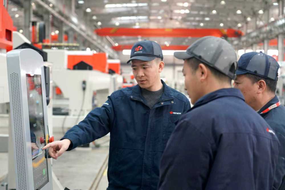 2026年1月8日,华工科技的技术人员在测试三维五轴激光加工装备。(陈子才 摄)