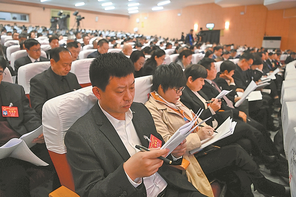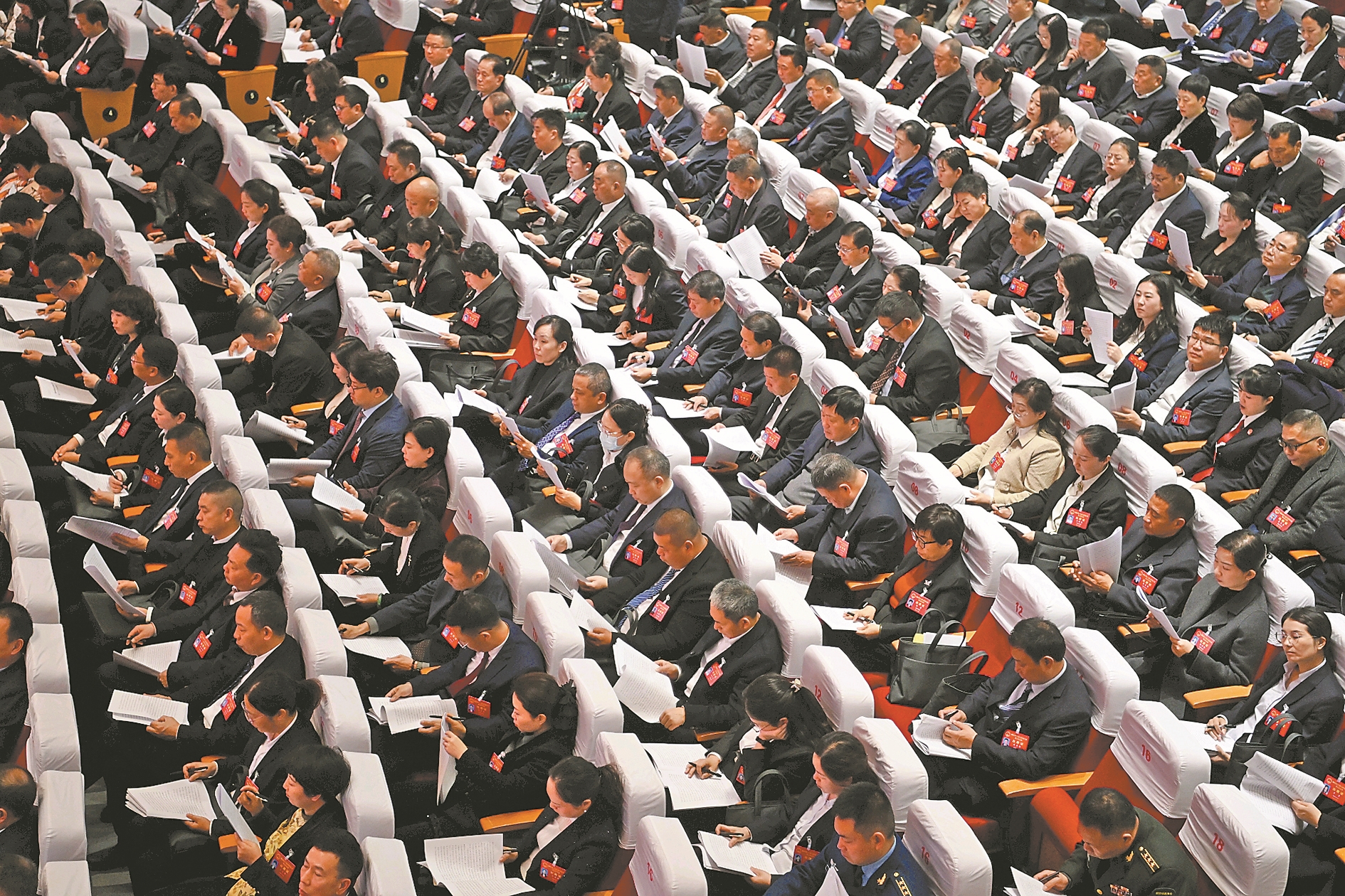 全神贯注学习政府工作报告要点。