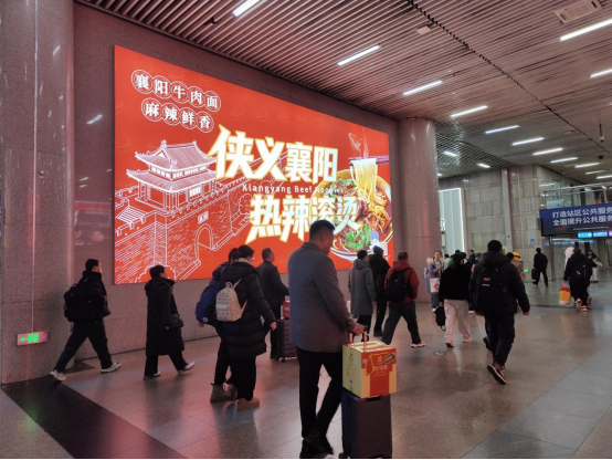 作为非物质文化遗产,襄阳牛肉面承载着本地的侠义文化底蕴,目前已形成约160亿元产值,在全国拥有超2.8万家门店,成为具有代表性的地方美食产业之一。高铁站内广告面向广大旅客传递地方风情,车厢内的场景化展示则进一步延伸了品牌触达场景,实现了空间覆盖与旅程陪伴的双重效果,这一系列推广是襄阳牛肉面从地域美食向全国品牌迈进的重要步骤。