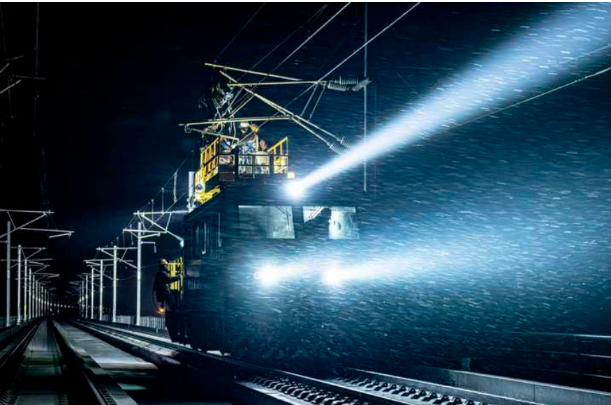1月20日凌晨,沪渝蓉沿江高铁武宜段钟祥南至荆门西线路上,一辆机车在开展接触网设备检修作业。(受访单位供图)