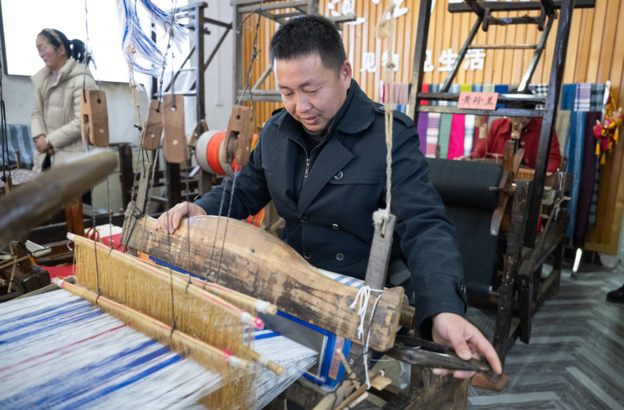 这几天,陶文成格外高兴,他筹备许久的1600平方米红安大布产业化示范和研学基地正式开业了,新场地有织机40多台,吸纳长胜街周边百余位留守妇女加入。
