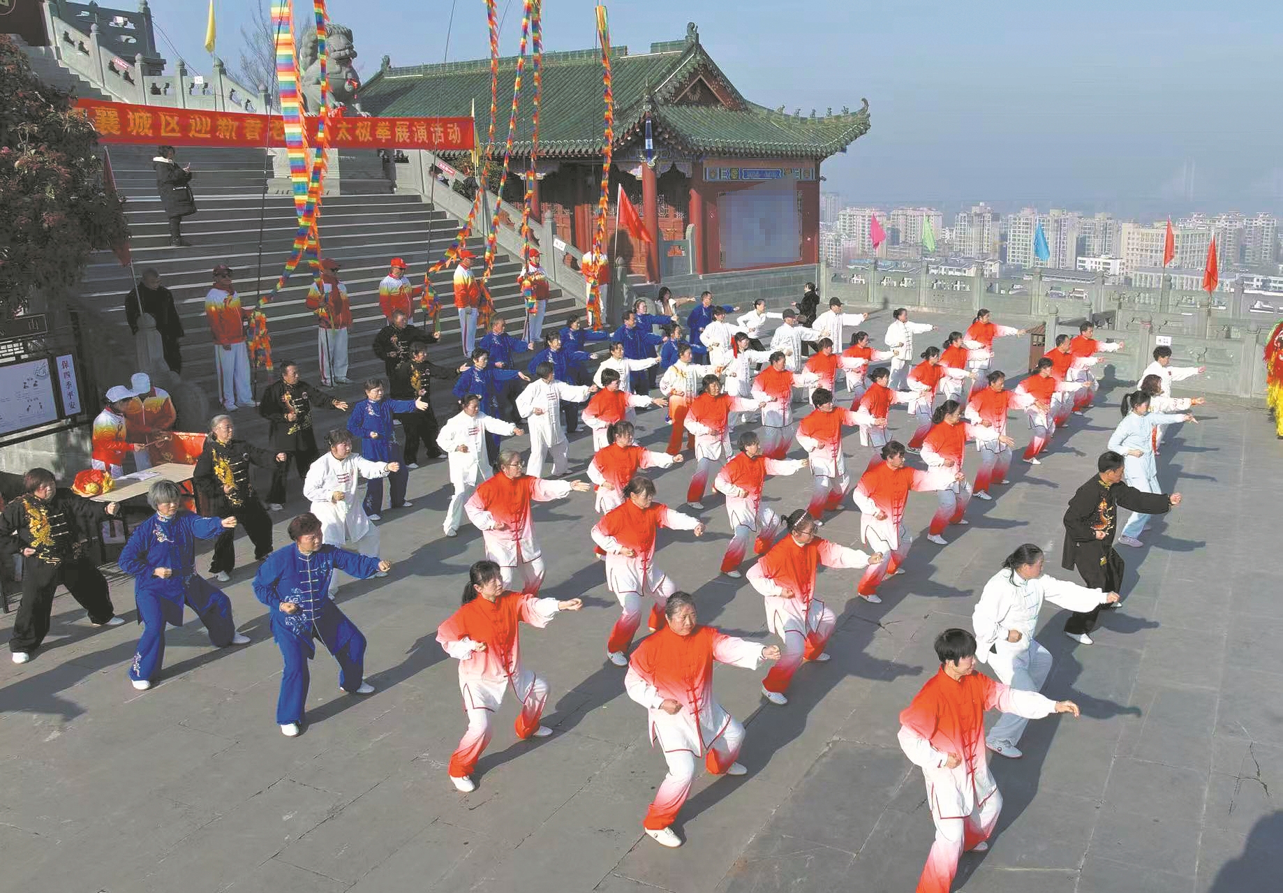 1月15日,“弘扬太极文化 乐享健康新春”太极拳迎新春展示活动在襄城区真武山举办,太极爱好者表演了八段锦、24式太极拳、陈式22式太极拳等节目,尽显太极神韵。