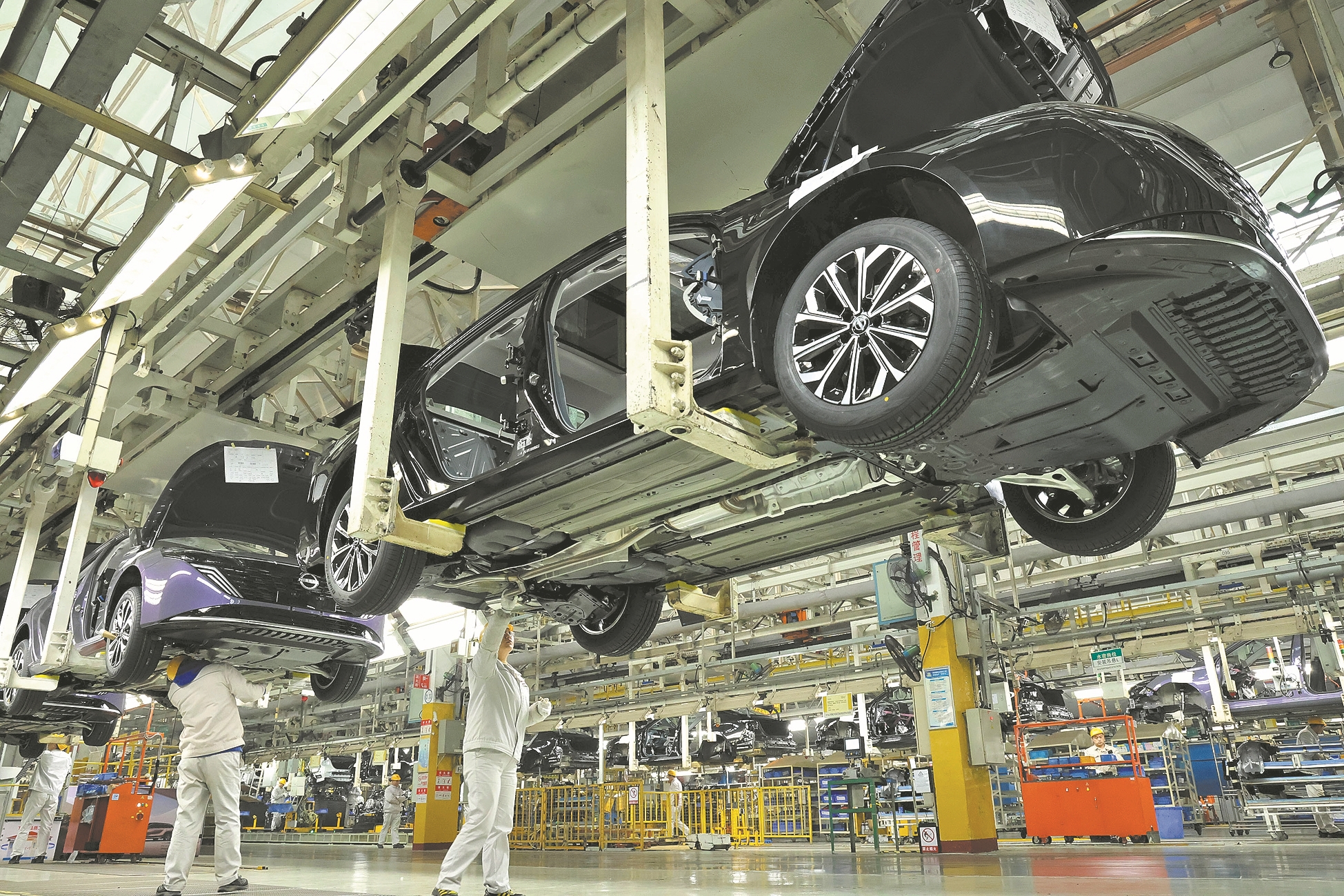 近日,在襄阳国家高新技术产业开发区的东风日产总装车间内,工人有序作业,生产线高效运转。