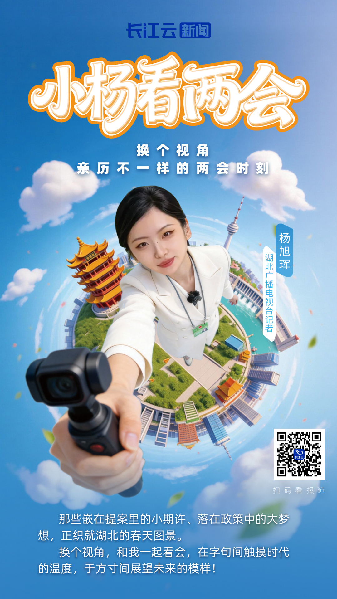 在这次的两会上,长江云新闻记者杨旭珲的使命,是让严肃的议题可亲可感,让宏大的叙事落地生根。她将穿梭于会场间,带着网友的好奇,向代表委员抛出最鲜活的问题,用镜头记录真实反映,以Vlog形式呈现两会背后的故事。