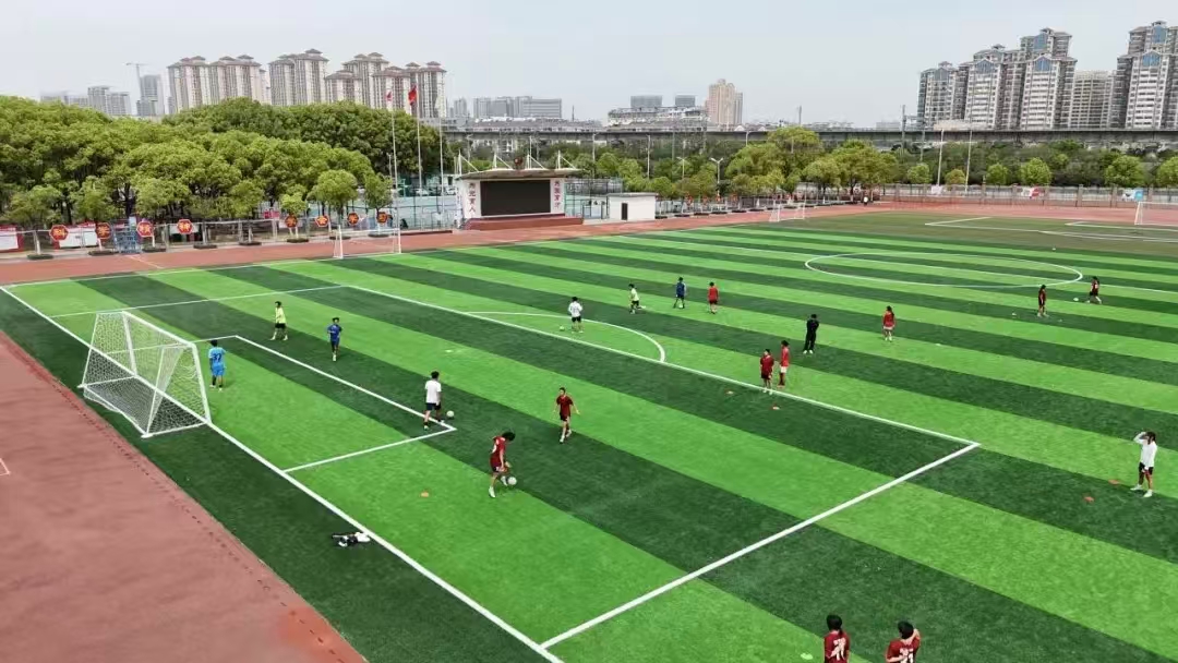 校园内孩子们尽情奔跑,足球在操场上划过一道道优美的弧线,足球的种子在幼小的心灵生根发芽。