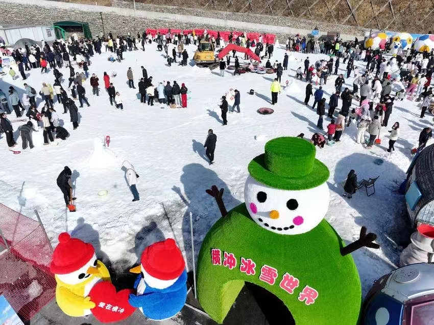 在横冲国际滑雪场“雪地大联欢”专区,游客们参加各项趣味活动,尽情体验冰雪乐趣。 杨韬 摄