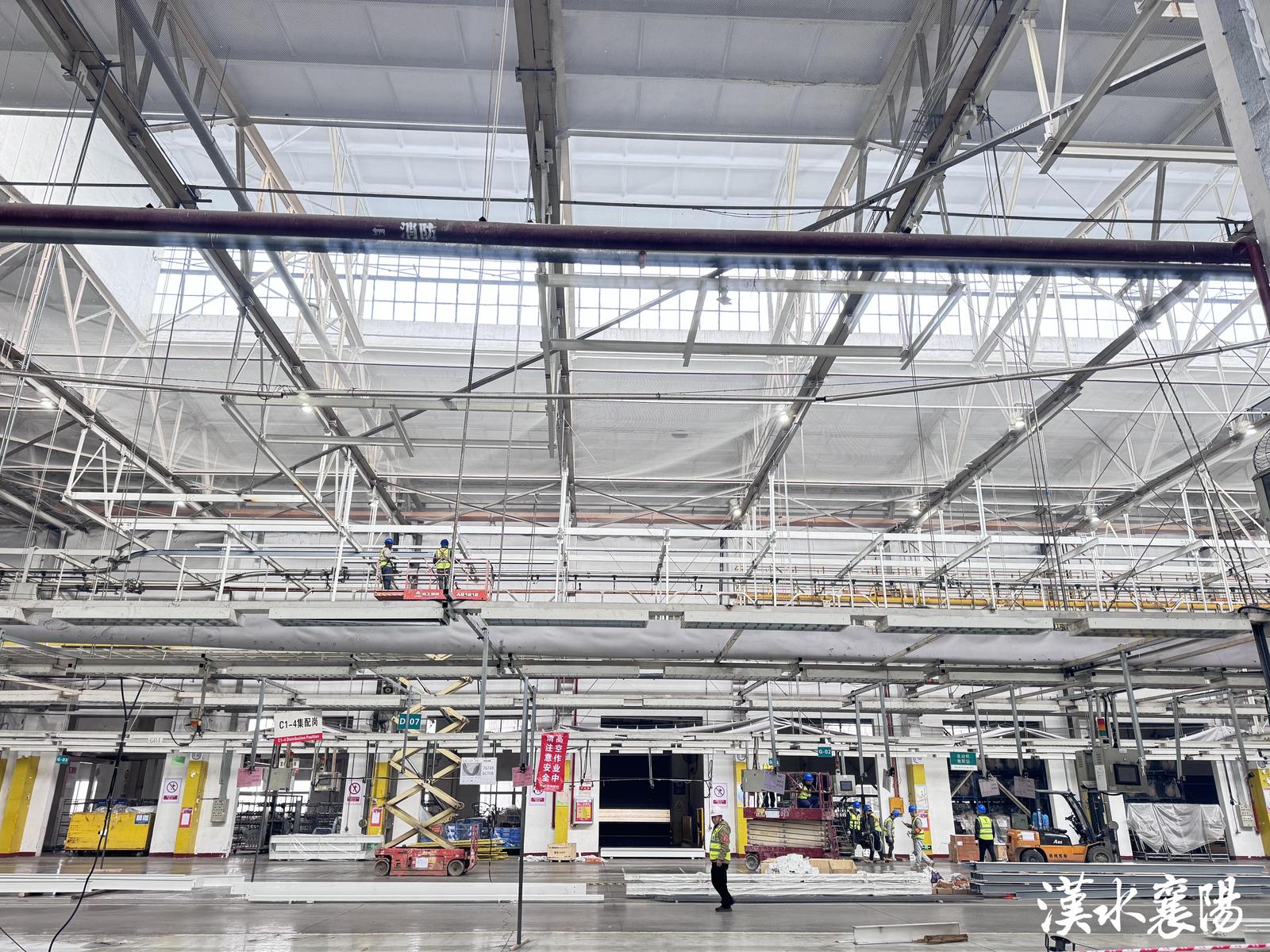 ▲东风新能源智能越野车产业基地项目的产线改造现场一派繁忙景象