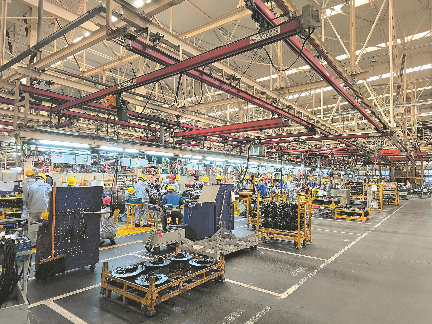 1月28日,东风德纳车桥有限公司襄阳工厂车桥生产线一片忙碌的景象。该公司负责人介绍,公司通过技术改造和智能制造升级,工厂自动化率达到90%以上,可实现多平台车桥混线生产,全面满足全球客户定制化需求。