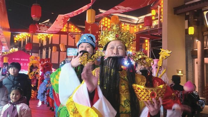 “财神爷”现身送祝福。
