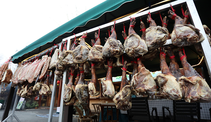 此外,谷城土猪养殖也循着传统生态模式逐步复苏。五山镇、庙滩镇等地采用生态放养模式,搭配酿酒酒糟科学喂养,构建起“种养循环”的绿色产业链,既保证了土猪肉的原生态品质,又实现了资源的循环利用。养殖户将新鲜土猪肉加工成腊蹄、香肠等特色产品。