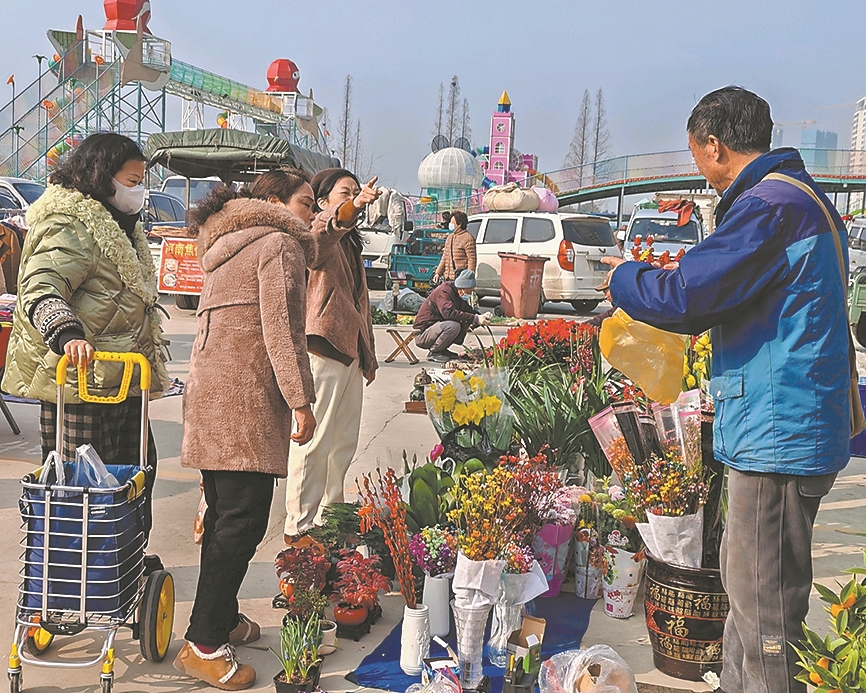 市民在集市上购买鲜花 全媒体记者韩秀嫣 摄