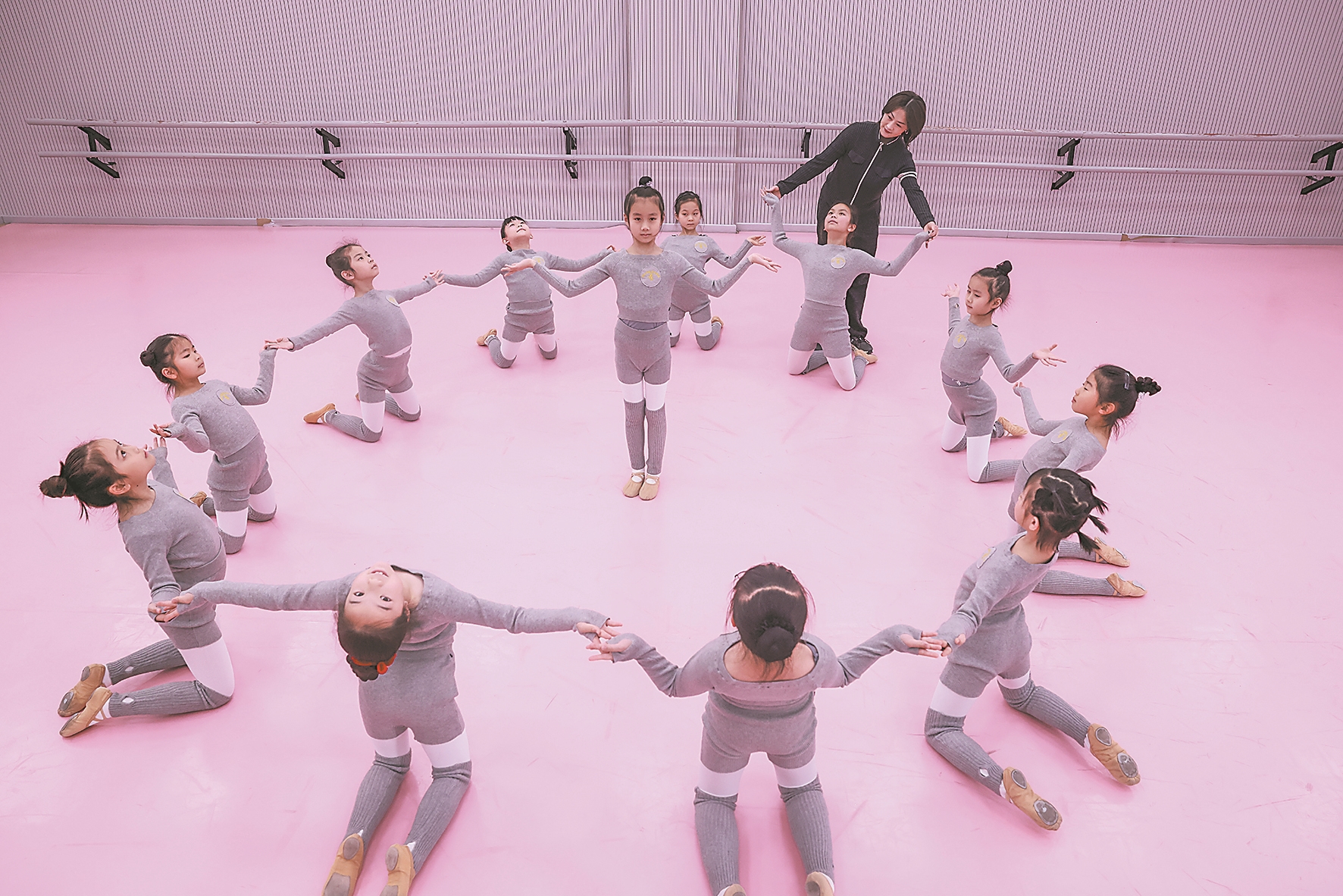 2月8日,在湖北省歌剧舞剧院艺术教育中心,孩子们在舞蹈老师指导下排练舞蹈节目。