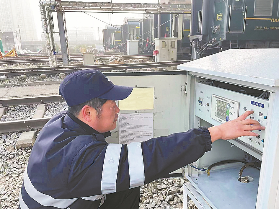 眼前这个技术检修一班共有6名成员。他们两两一组,分成三个检修小分队。春运期间,作为白天轮值班组,他们需要完成6辆列车(共计108节车厢)检修任务。夜间班组同样不能有丝毫懈怠,需完成5辆列车的检修工作。每辆列车的检修时间被严格压缩在80分钟内,时间紧迫,容不得半点马虎。尤其是像K931次这样的车次,早上8点40分进入运用车间车库,13点40分就必须出库,检修时更是要争分夺秒,每一秒都显得无比珍贵。