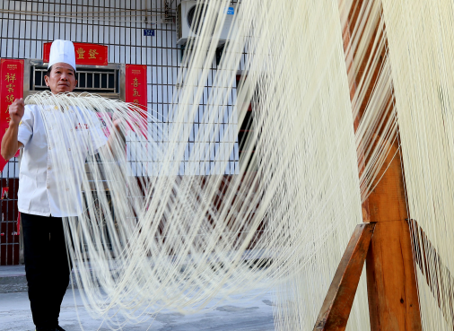 在石花镇,一道始于清朝乾隆年间的独特美食——“石花空心奎面”,走进了小学生的劳动课堂。孩子们在老师傅的指导下揉面、拉面,还将制作过程拍成视频上传网络,收获无数点赞和好评。一碗面,传递着几代人掌心的温度。