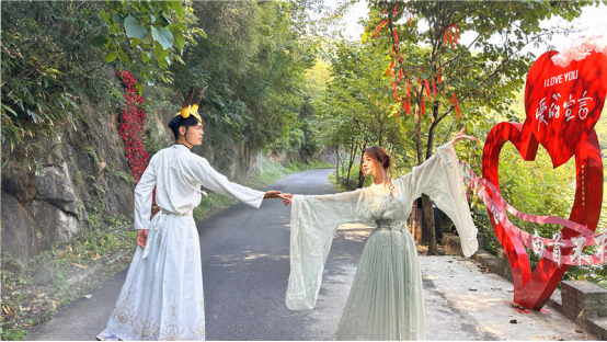 一支由茶农、民宿老板和返乡青年组成的表演队伍,穿上自己设计剪裁的服装,敲锣打鼓,唱词与时俱进,融入了生态乡村、直播带货、AI赋能等新鲜元素。