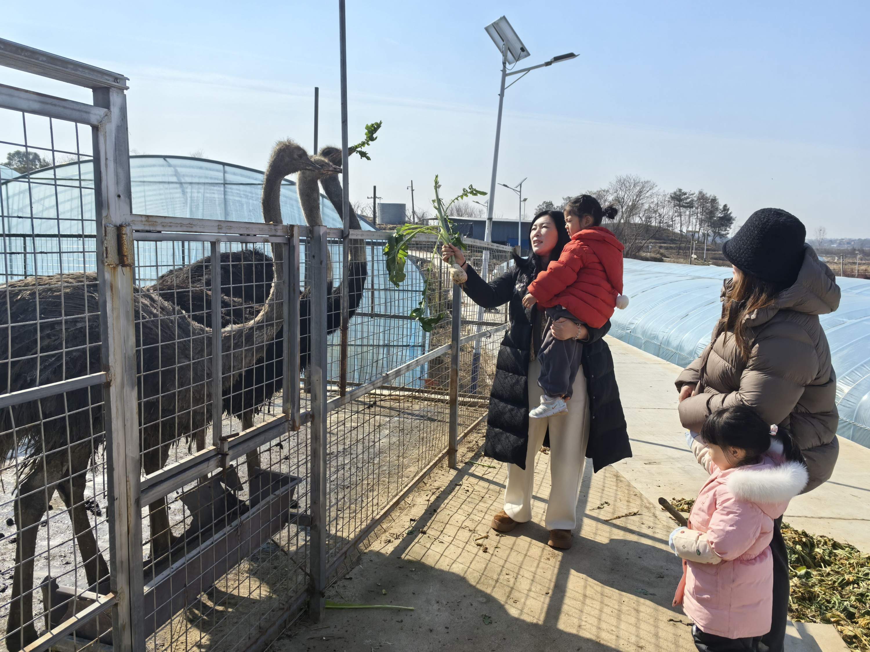 据熊兵介绍,青云村位于大别山南麓,丘陵起伏,田少人多,十年前曾是当地有名的贫困村。武汉市公安局驻村工作队与他们结对帮扶后,帮村里修路、挖塘、改造农田、销售农产品,村民迅速脱贫。为了吸引人才,实现可持续发展,近年来,青云村在驻村工作队大力支持下,发挥党员带头作用,引进企业,全力打造“党建引领+助农直播+农文旅”的特色发展模式,“这次团年饭,也是一次直播线上线下互动体验。你看,村口的那口清水池,治理前是令人头痛的臭水塘,以后这里种上荷花,就是一道风景。旁边的大棚是采摘园,里面种的是火龙果。对面山坡上是农家乐庄园,里面有孔雀园、鸵鸟园,是孩子们的最爱……”