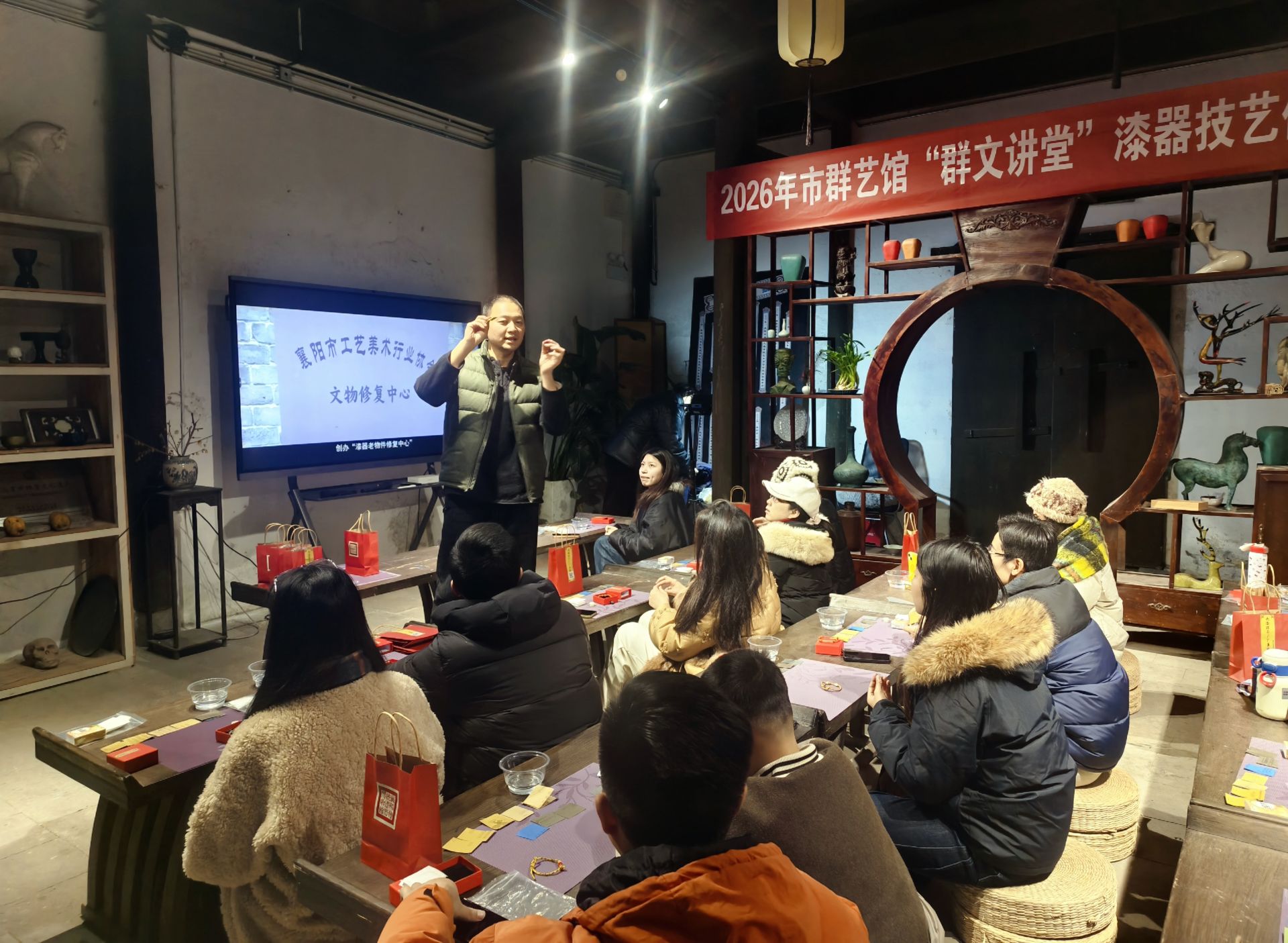 “李氏漆器髹饰技艺”传承人隗鹏正在讲授制作漆器课程