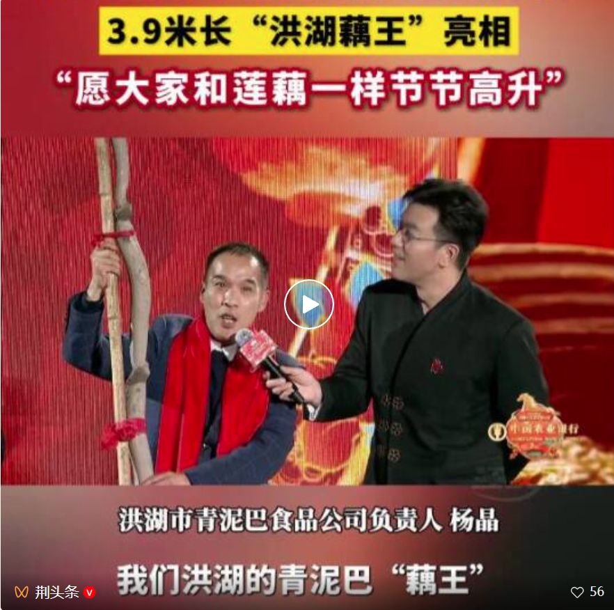 一批新时代“产业尖兵”的集体亮相。洪湖“藕王”杨晶,带来了三四长的洪湖青泥巴藕王。洪湖水土好,青泥巴又软又肥,长出的莲藕个个粉糯香甜。