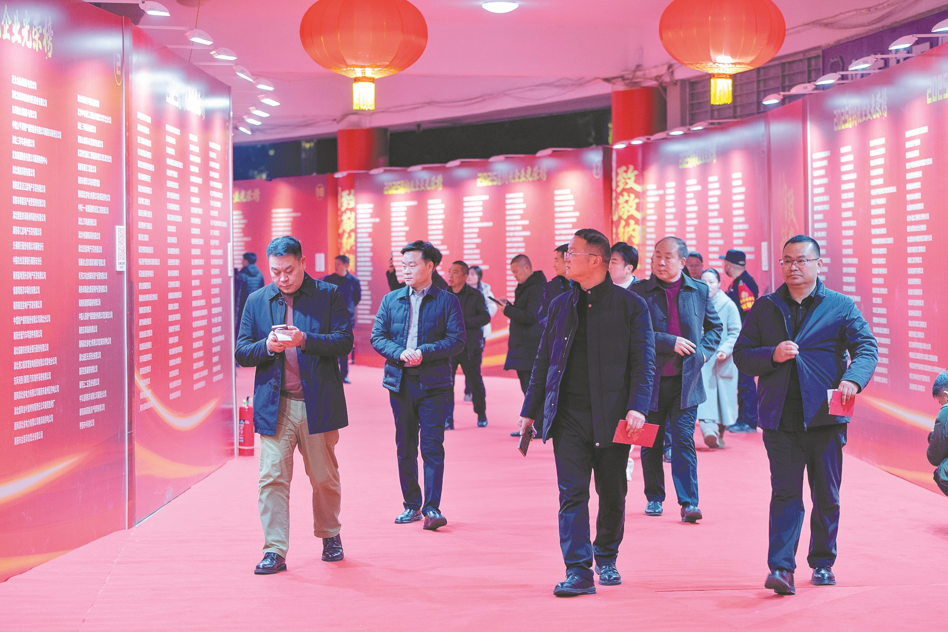 2月10日晚,湖北交投汉江生态城2026年襄阳市春节联欢晚会现场铺设了一条百米“星光大道”——由26块展板组成的“纳税企业光荣榜荣誉长廊”,展示着4000家对襄阳经济发展作出贡献的企业名称。每一位步入会场的企业代表,在享受艺术盛宴之前,先在这里接受了一座城市给予的崇高礼遇。