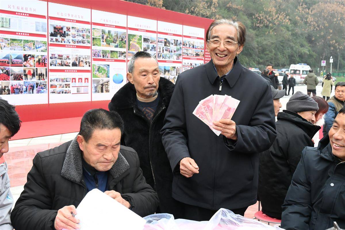 在扣除产业发展、人居环境整治、基础设施建设与民生服务等必要支出后,村里拿出84万元现金及价值16万元的礼品进行分红。