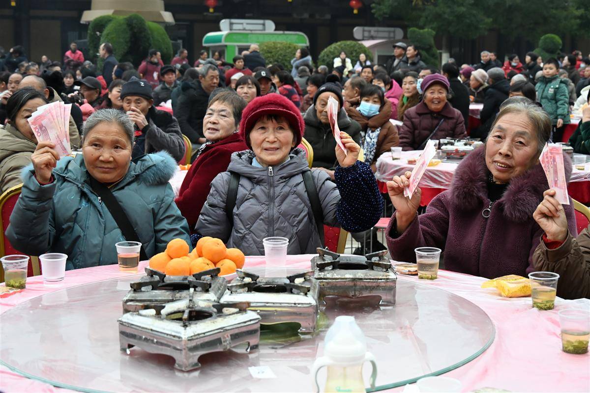 全村405户居民均收到1500元红包和一份礼品,350名60岁以上老人还有特别礼物,每人领到500元福利津贴。