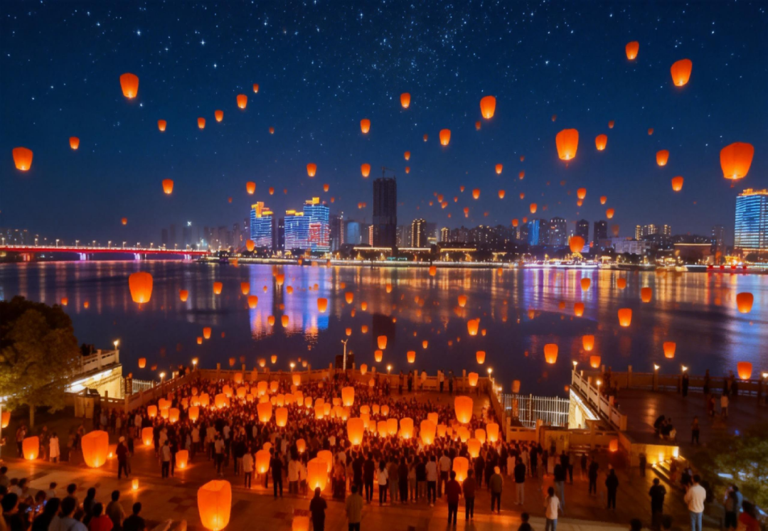 活动最高潮,千人同步放飞氦气电子孔明灯,点点灯火缓缓升空,汇聚成一片璀璨星河,照亮襄阳古城的夜空,也照亮新一年的美好征程。欢呼声、歌声、祝福声交织在一起,与古城的灯火、汉江的波光相融,构成一幅“千灯映古墙,万户共迎春”的新春画卷。
