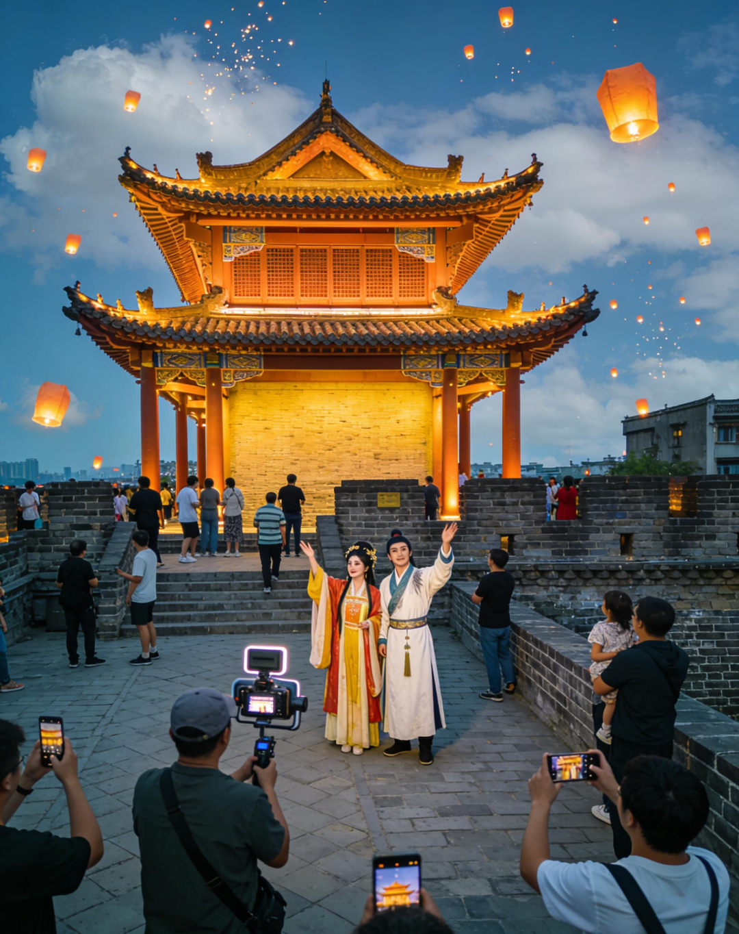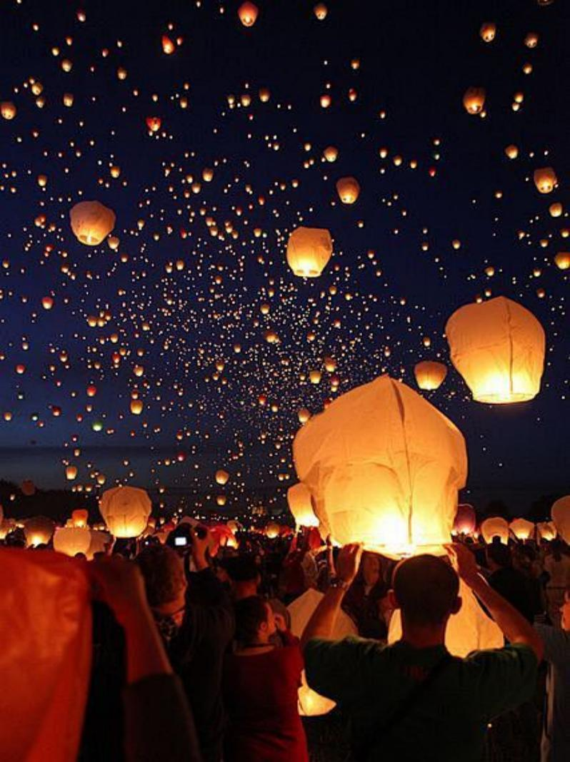 在古城点亮祈福孔明灯