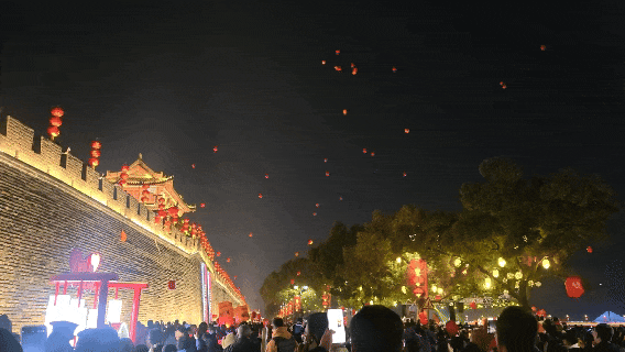 一盏盏孔明灯次第升空、翩跹起舞