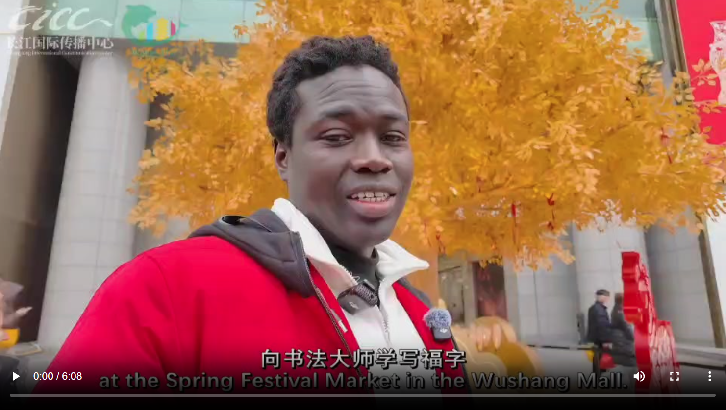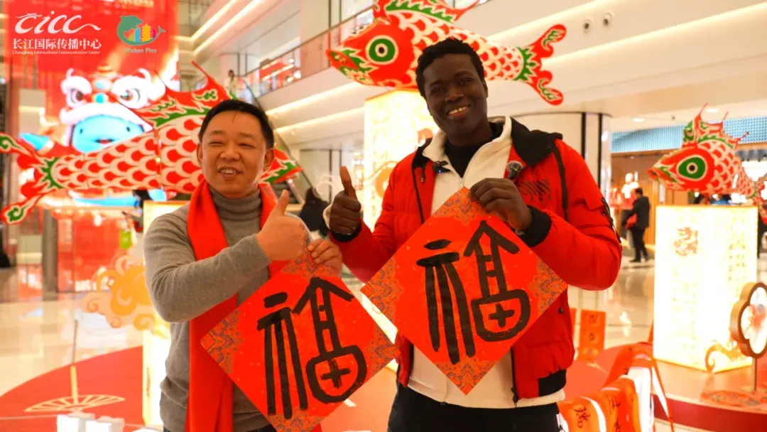 2026年春节的武商MALL门口,这位塞内加尔小伙对着手机镜头开心自拍,背景是热闹非凡的春节非遗集市,马年的红色装饰点缀着每个角落,新年的气息扑面而来。他的任务卡上写着三项挑战:解锁非遗技能·书法、亲手写“福”、传递新春祝福。带着这份“使命”,郭飞龙走进了人潮涌动的非遗集市。