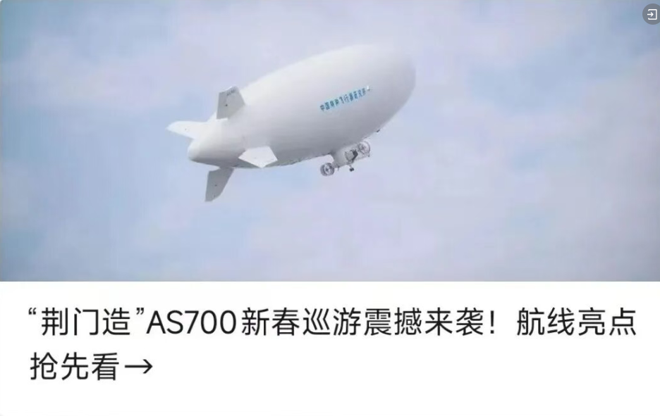 “荆门造”祥云AS700载人飞艇