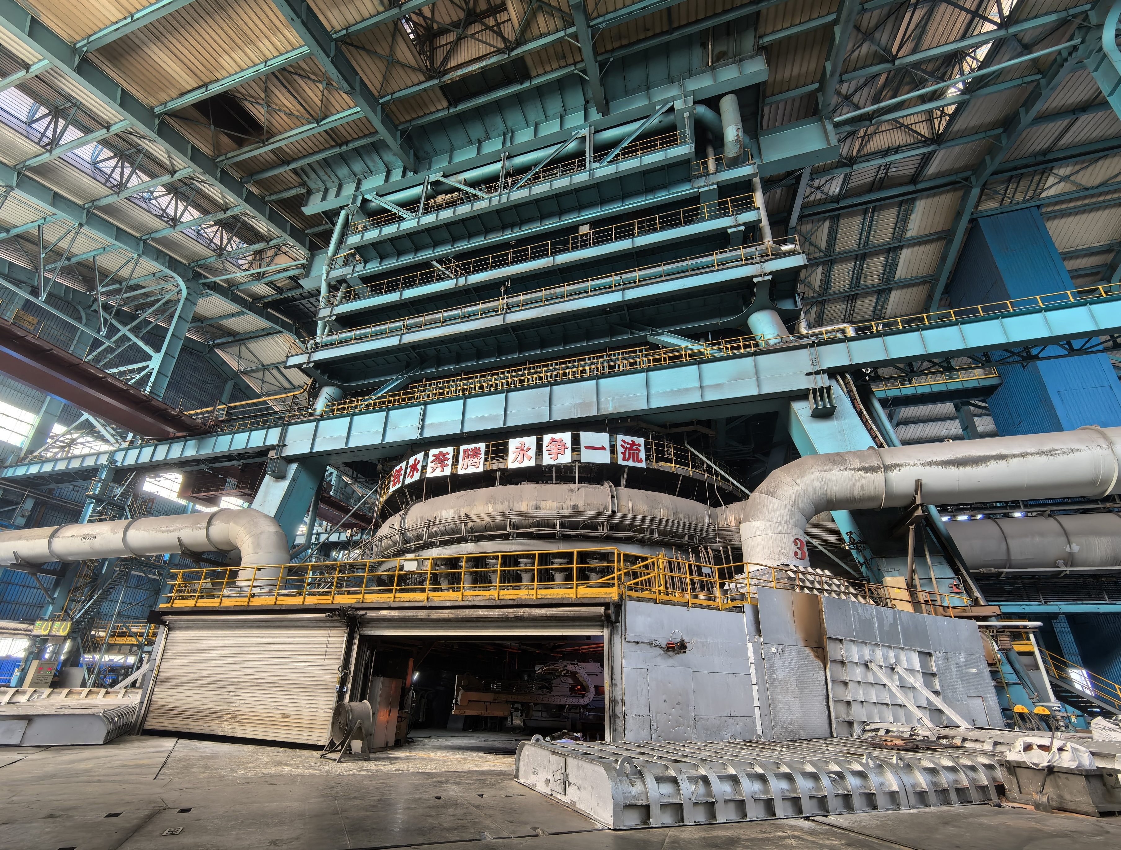 武钢有限炼铁厂7号高炉炉长左红星介绍,7号高炉于2022年完成环保提升工程,通过“5G+工业互联网”改造,全面满足国家超低排放要求,实现智能、高效、环保、安全转型,曾多次荣获宝武集团成本冠军炉、效率标杆机组等称号,各项指标均达到行业领先水平。