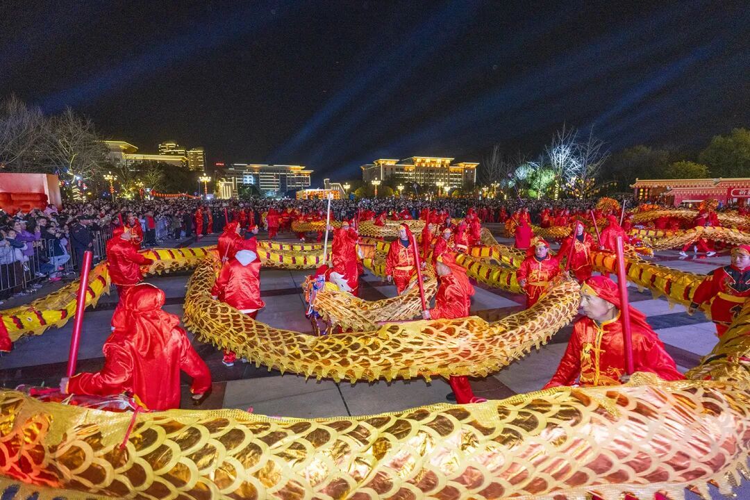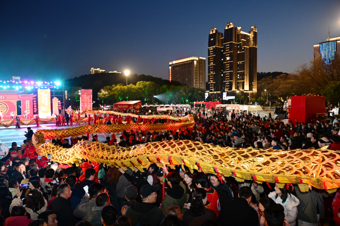 活动在一场庄重又喜庆的龙灯点睛仪式中拉开序幕。作为黄石最具代表性的民俗瑰宝,王贵武龙灯始于清代崇德年间,已有300多年历史,九代传承至今,以武为魂、武舞相融的特色被誉为“中华武龙第一灯”。