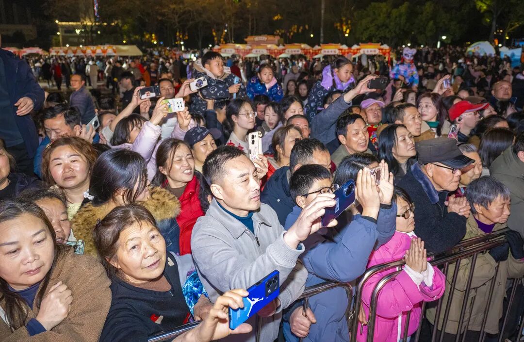 中央舞台展演区好戏连台,国家级非遗王贵武龙灯、划莲船等动态非遗展示先后上演,搭配本土乐队、新潮电音表演,让传统民俗与年轻潮流激情碰撞。