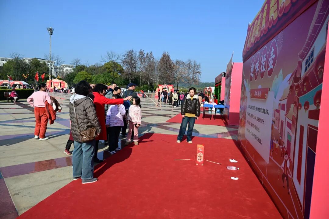 马上竞技・民俗活力体验区既有省级非遗火流星的炫酷表演,也有投壶、套圈、桌面冰壶等民俗竞技项目,全民参与点燃新春活力。