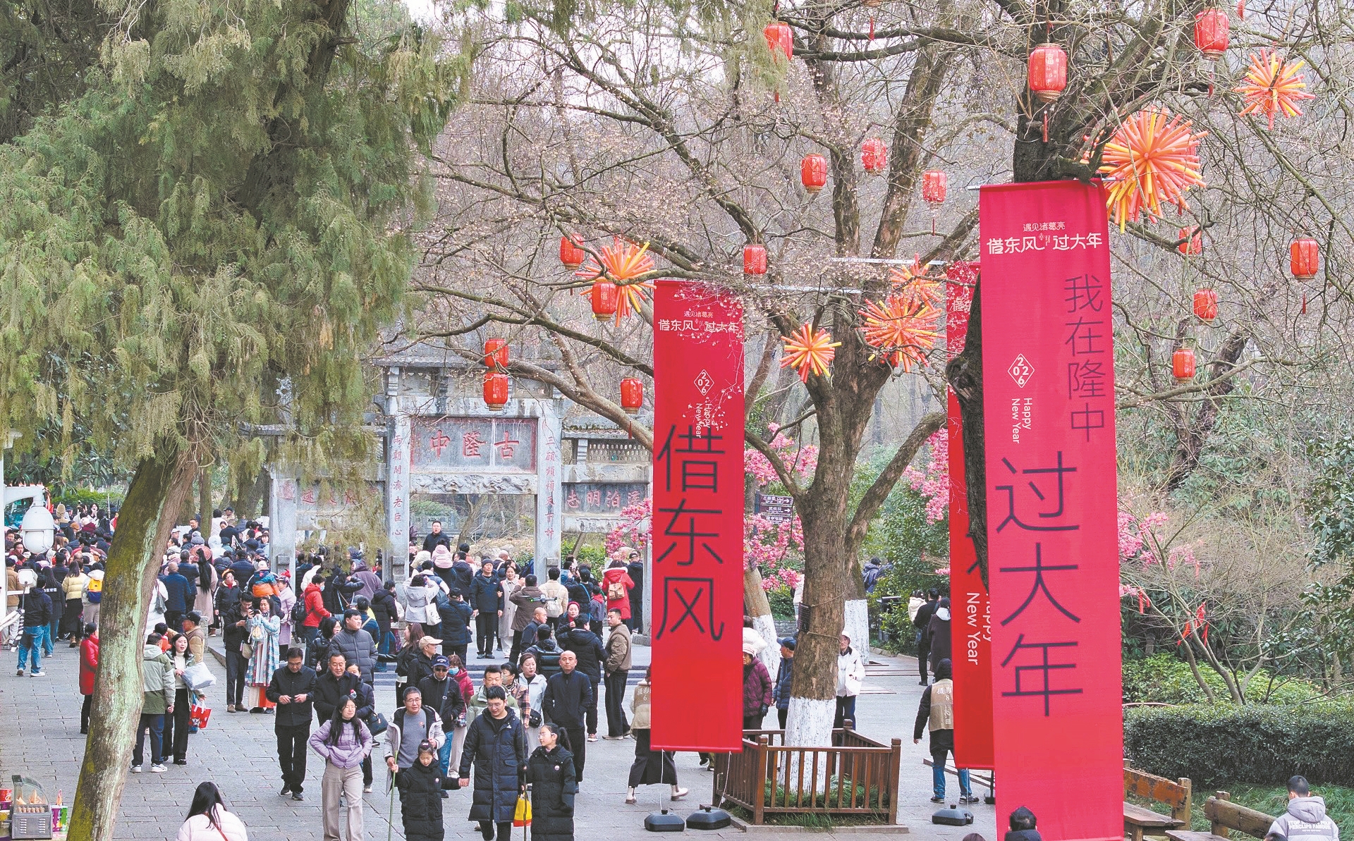 古隆中景区推出“遇见诸葛亮·借东风过大年”沉浸式三国主题活动,吸引各地游客纷至沓来。三国英雄巡游、《三顾茅庐》实景情景剧,为游客呈上一场精彩绝伦的文化盛宴。