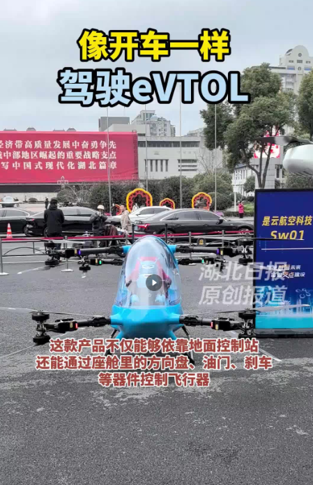 2月24日,春节后的首个工作日。武汉洪山礼堂门前,一款蓝色eVTOL(电动垂直起降飞行器)引来众人的啧啧称奇。