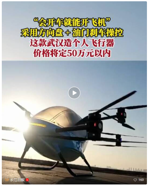 “我们希望能把门槛打下来,目标售价控制在50万元以内。”熊清震说,他们想做的是让普通人也能用得起,让飞行不再神秘。“先让大家在公园、水面上飞起来,从个人体验经济到小型应急救援,让普通人能安全地‘兜一圈’,这才是低空经济普及的第一步。”