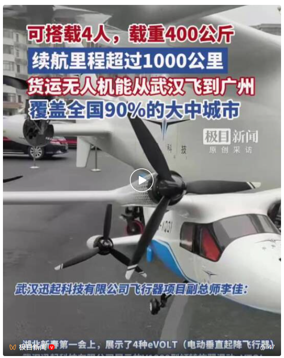 2月24日,春节后上班第一天,湖北召开全省加快建成中部地区崛起的重要战略支点推进大会。“湖北新春第一会”的现场,一口气展示了4种eVTOL,它们也代表了湖北在这条新赛道上的最新成果。