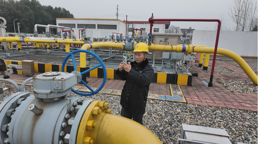 客服部工业管理员余文龙手持专业检测仪器,对工艺区阀门、法兰连接处进行细致检查。营业厅主管李吉红说:“年味正浓时,服务不打烊。春节期间营业厅正常开放,为用户安全用气提供全方位服务。”