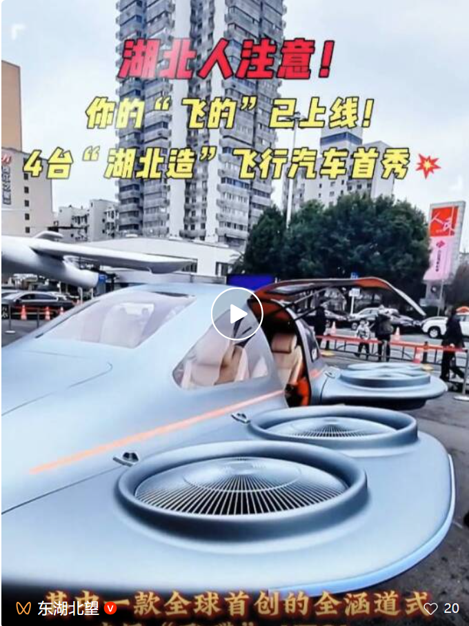 近日,一架造型酷似科幻电影道具的飞行器,在武昌洪山礼堂前平稳起飞。广场上,4款由武汉企业自主研发的电动垂直起降飞行器(eVTOL)集中亮相,不少围观群众驻足叫好。