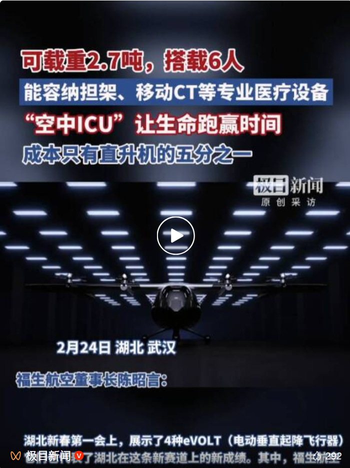 长期以来,地面交通拥堵、复杂地形阻隔、急救资源分布不均,始终是制约医疗应急效率的核心痛点。在此背景下,由于内部空间较大,可以搭载包括移动CT、ECMO等专业医疗设备,Sparrow-X2可以承担“空中ICU”的任务。