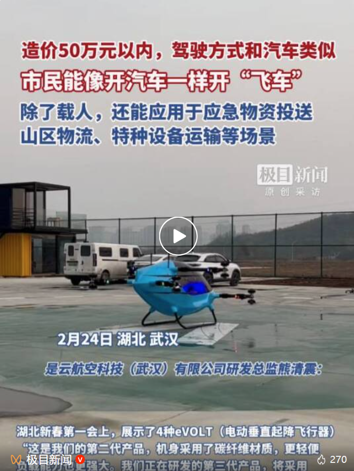 熊清震说,为了让普通人也能圆飞行梦,他们希望将新产品的单价控制在50万元以内。同时,他们还在研发适合在水面起降的产品,将来可以应用于公园、湖面等场景,让更多的普通市民也能体验飞行的乐趣。