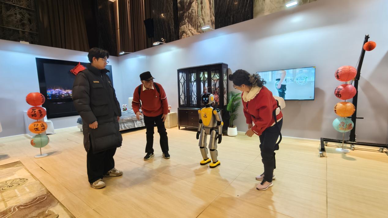 同一展区,两位老人穿着光谷华汇的柔性外骨骼机器人轻松起蹲,相约“春天一起去爬磨山看樱花”。