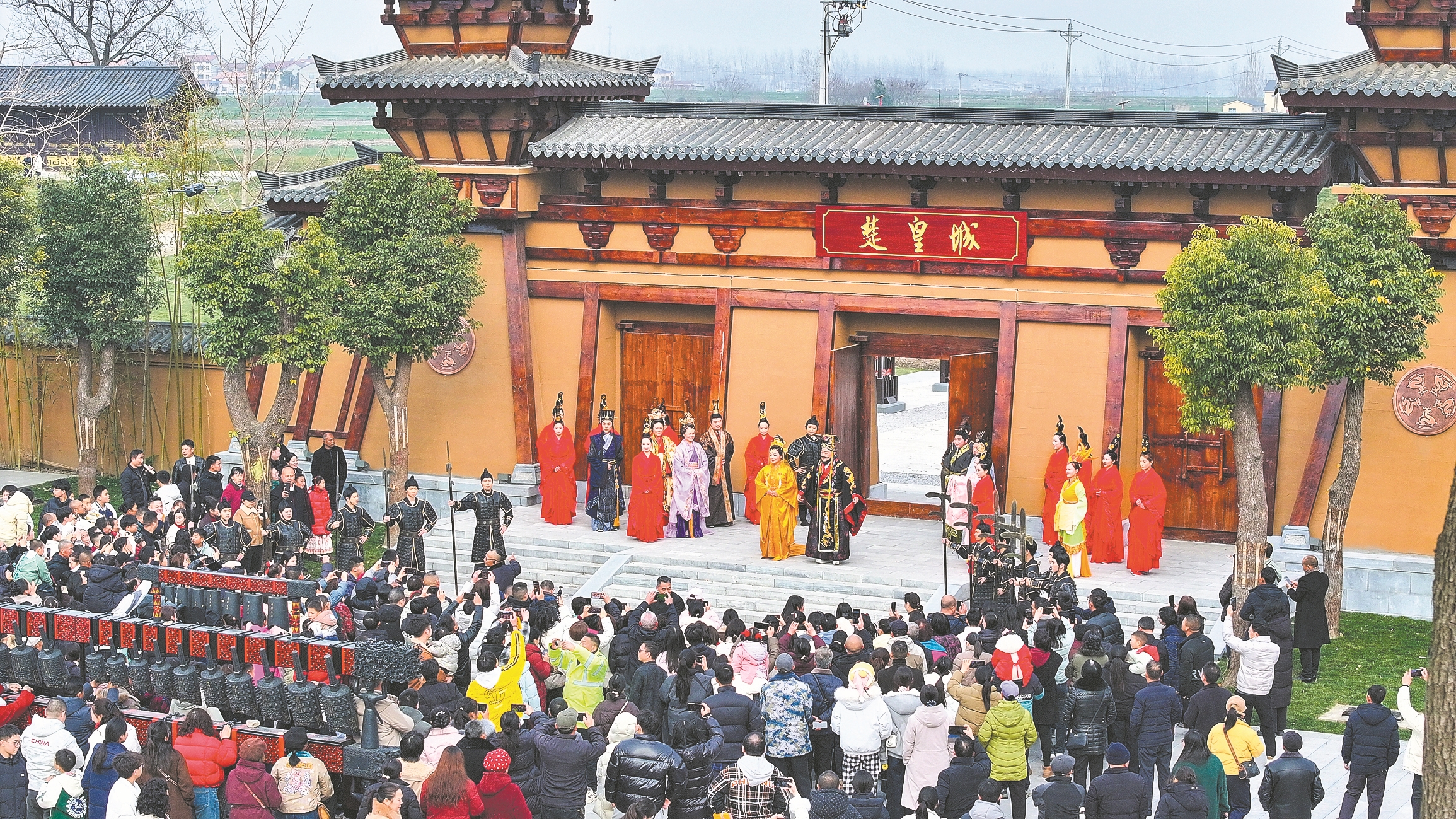 春节期间,楚皇城上演的《楚王迎宾礼乐》受到群众欢迎。通讯员 郑新涛 摄