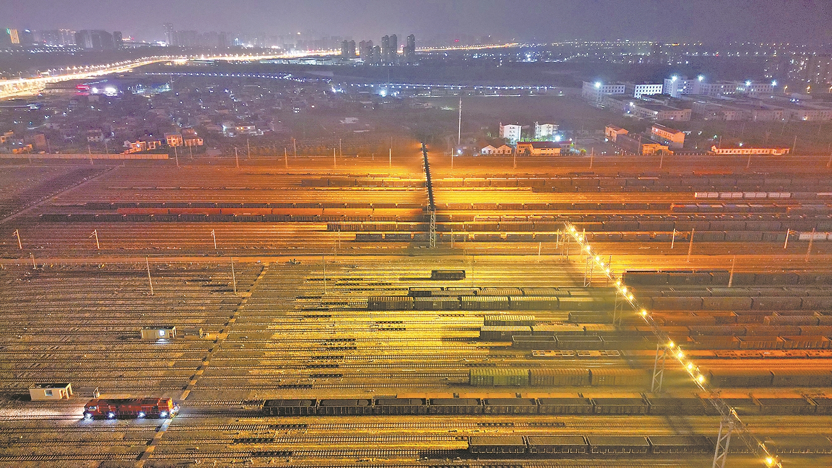 2月27日晚,湖北省作业量最大的特等铁路编组站——襄阳北站灯火通明,繁忙有序。